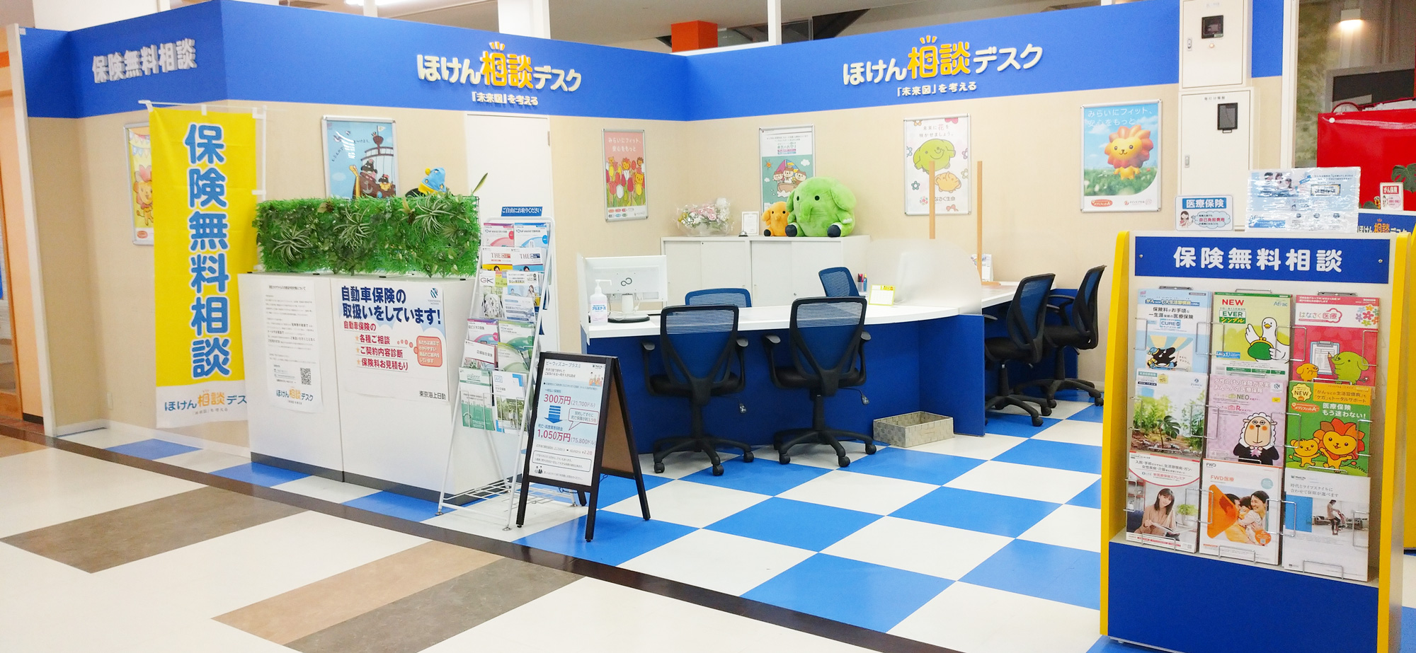 ほけん相談デスクの店舗は商業施設内にありますので、お買物の際などに気軽にお立ち寄りいただけます。